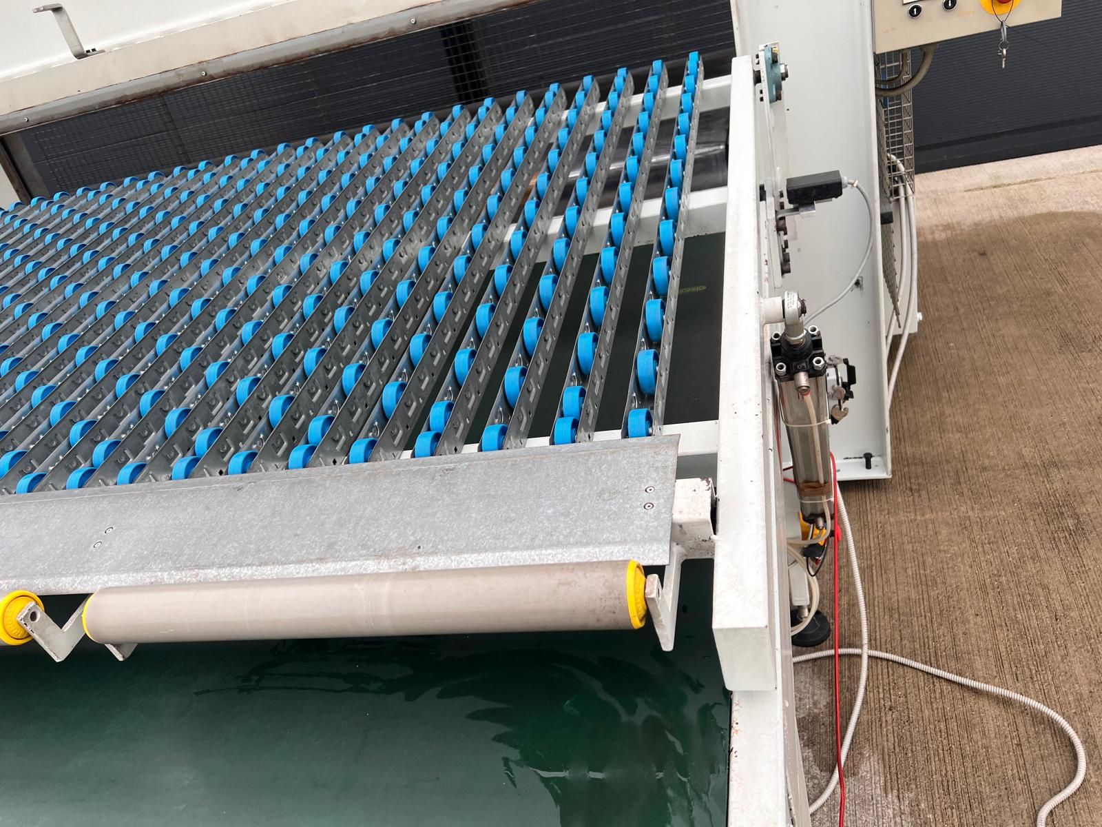 Automatyczny załadunek i odbiór na stole rolkowo taśmowym (1680x3500 mm).